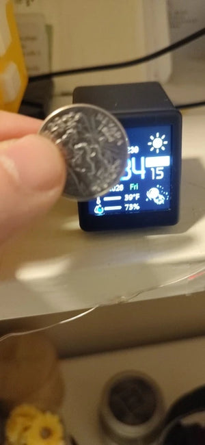 This tiny display fits anywhere and gives fast, accurate online weather and local temp readings; I use it every morning to decide whether to run the dehumidifier or open windows, which saved money and hassle over the last winter it prevented mildew issues and reduced my heating bill a bit.